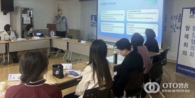oto방송 김민석 기자 | 수원시 팔달구 우만2동는 지난 13일, 우만2동 행정복지센터에서 관내 통장들을 대상으로 ‘전자금융사기 예방 교육’을 실시했다.
