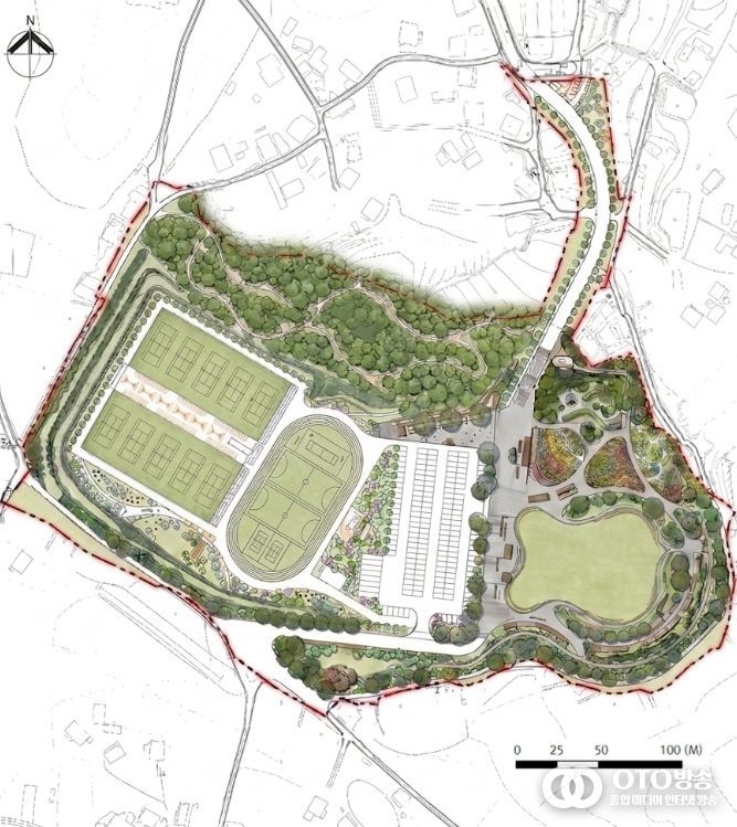 새롭게 조성되는 체육공원은 테니스장과 다용도 트랙, 넓은 잔디광장 등이 들어서며, 이용객 편의를 위한 210면 규모의 주차장도 마련된다.