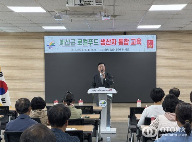 oto방송 김민석 기자 | 예산군은 지난 16일 농업기술센터 세미나실에서 로컬푸드 직매장 출하 농가 80여 명을 대상으로 2026년 로컬푸드 생산자 2분기 통합 교육을 실시했다.