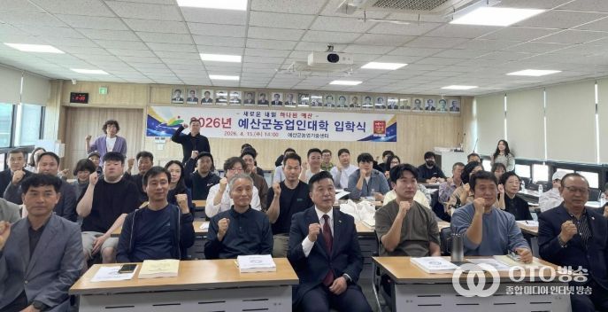 oto방송 김민석 기자 | 예산군농업기술센터는 지난 15일 농업기술센터 세미나실에서 입학생 38명이 참석한 가운데 ‘2026년 예산군농업인대학 스마트팜학과’ 입학식을 개최했다고 밝혔다.