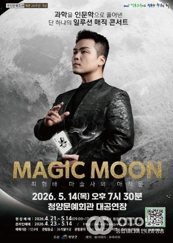 oto방송 김민석 기자 | 청양군이 5월 가정의 달을 맞아 온 가족이 함께 환상적인 마술의 세계를 경험할 수 있는 최형배 마술사의 일루션 매직쇼 ‘매직 문(MAGIC MOON)’을 개최한다.