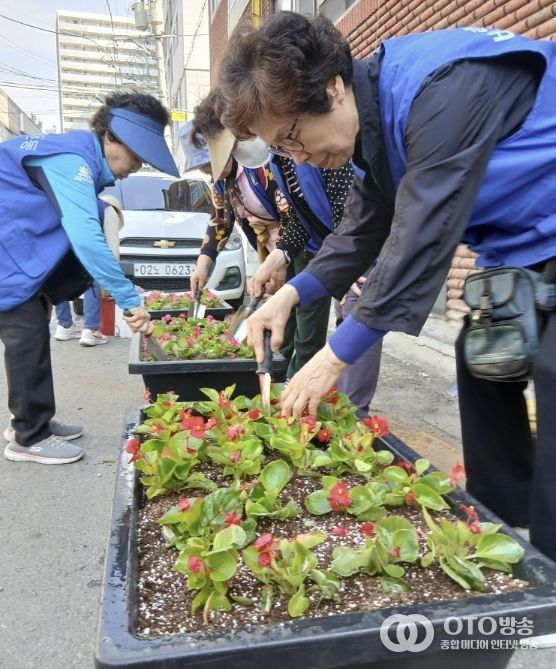 oto방송 김민석 기자 | 수원시 팔달구 우만2동 바르게살기운동위원회는 지난 15일, 상습 무단투기지역 지킴이 활동의 일환으로 가로경관과 골목환경 개선을 위한 초화류를 식재 활동을 전개했다.