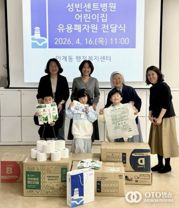 oto방송 김민석 기자 | 수원시 팔달구 인계동은 지난 16일 오전, 성빈센트병원 어린이집으로부터 아이들이 정성껏 모은 유용 생활 폐자원을 전달받았다고 밝혔다.