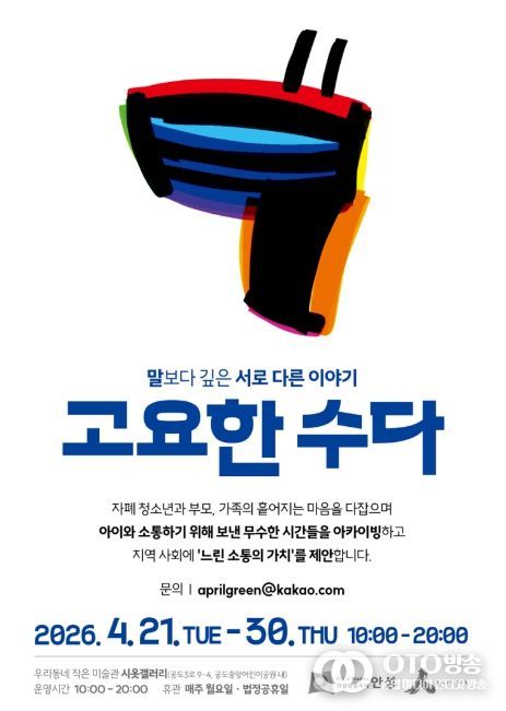oto방송 김민석 기자 | 안성시 시옷갤러리는 오는 4월 21일부터 4월 30일까지 자폐 청소년과 그 가족이 함께 참여하는 전시 《고요한 수다》를 개최한다고 밝혔다.