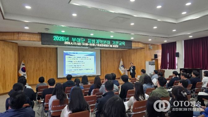oto방송 김민석 기자 | 부여군이 회계 및 계약업무 담당 공무원들의 전문성을 강화하고 적극행정 문화를 조성하기 위해 ‘2026년 지방계약분야 기본교육’을 실시했다고 밝혔다.