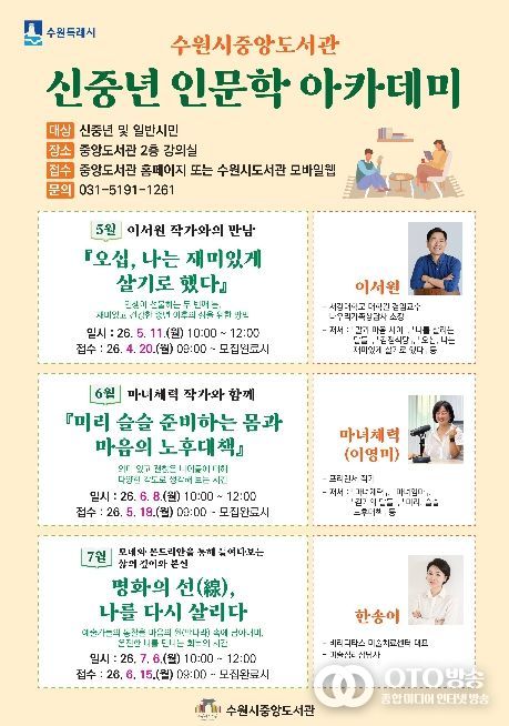 oto방송 김민석 기자 | 수원시 중앙도서관이 5월부터 7월까지 매달 1회 운영하는 ‘신중년 인문학 아카데미’ 수강생을 모집한다.