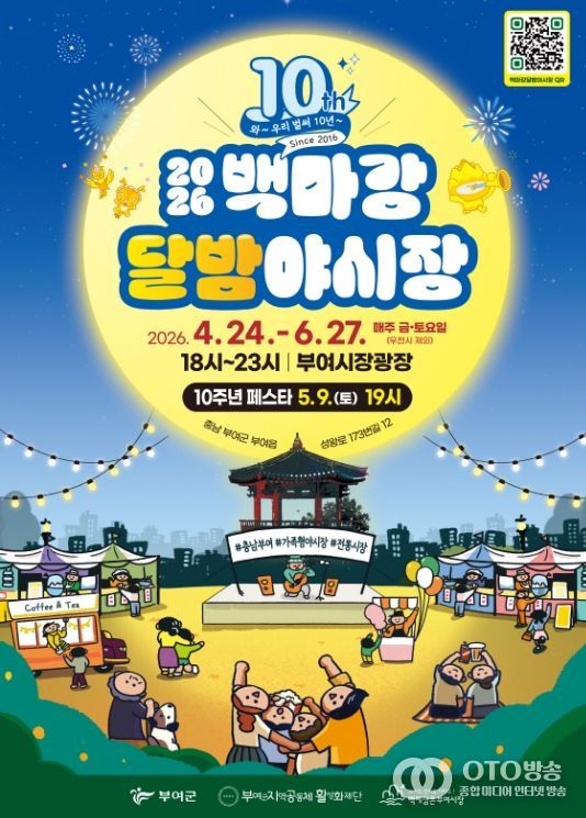 oto방송 김민석 기자 | 대표적인 상권 축제이자 부여의 매력을 널리 알리는 관광 자원인 ‘백마강 달밤야시장’이 올해 10회차를 맞아 한층 업그레이드된 프로그램으로 돌아온다.