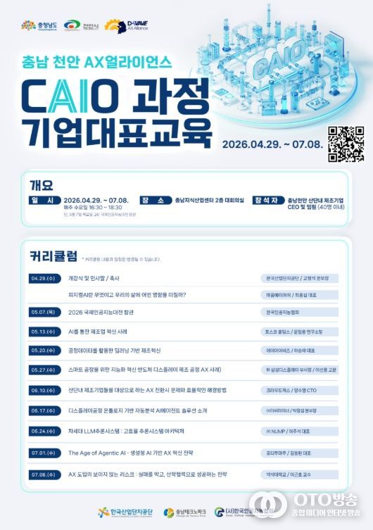 oto방송 김민석 기자 | 천안시가 지역 제조기업 경영진의 인공지능(AI) 이해도와 활용 역량을 높여 기업 경쟁력을 강화하기 위한 전문 교육 과정 운영에 본격적으로 나선다.