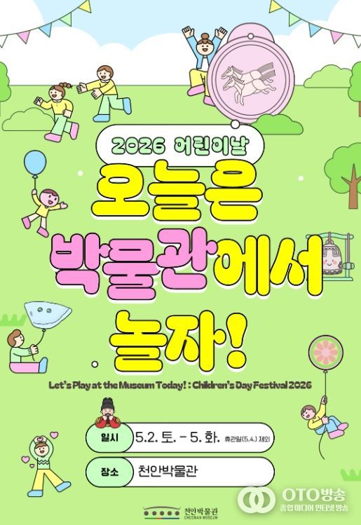 oto방송 김민석 기자 | 천안박물관은 내달 2~ 5일 어린이날 특별행사 ‘오늘은 박물관에서 놀자!’를 운영한다고 21일 밝혔다.
