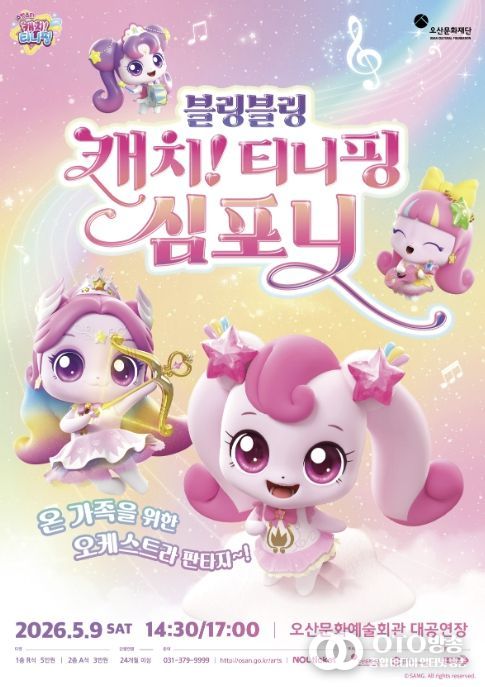 oto방송 김민석 기자 | 오산문화재단은 어린이날을 맞아 온 가족이 함께 즐길 수 있는 오케스트라 공연 ‘블링블링 캐치! 티니핑 심포니’를 선보인다고 밝혔다. 이번 공연은 인기 애니메이션 ‘캐치! 티니핑’ 시리즈의 OST를 오케스트라 라이브로 감상할 수 있는 무대로, 어린이뿐 아니라 가족 단위 관람객들에게 특별한 문화 경험을 제공할 예정이다.