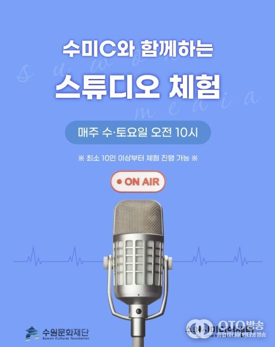oto방송 김민석 기자 | 수원문화재단 수원시미디어센터는 수원시민의 미디어 접근권을 확대하고 미디어 전문 시설로서 그 활용도를 높이기 위해 오는 4월부터 ‘스튜디오 체험 프로그램’을 본격 운영한다.