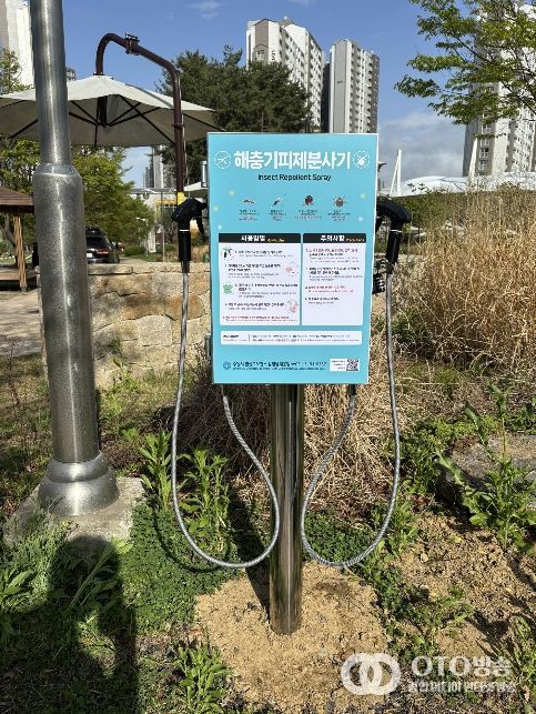 oto방송 김민석 기자 | 수원시 권선구보건소가 기온 상승과 야외 활동 증가 시기를 맞아 20일 관내 주요 공원과 산책로에 해충기피제 분사기를 확대 설치했다.