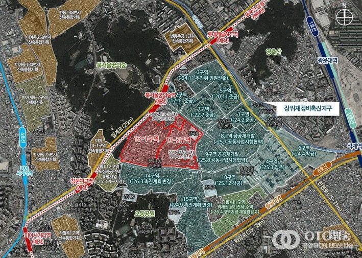 oto방송 김민석 기자 | 서울시가 장위 재정비촉진지구의 마지막 남은 재개발 지역인 ‘장위동 219-90 일대(13-1구역), 장위동 224-12 일대(13-2구역)’의 신속통합기획을 확정(5,900세대 내외 규모, 13-1구역 : 3,400세대, 13-2구역 : 2,500세대)했다. 이로써, 장위 재정비촉진지구 전체의 재정비촉진계획 수립이 완료되어, 장위동 일대가 하나의 생활권으로 연결된 도시 구조로 재편돼 주민의 생활 여건이 한층 개선될 것으로 기대된다.