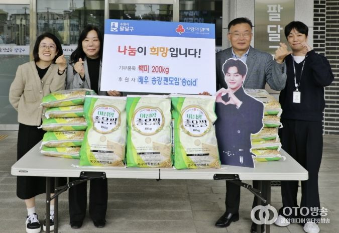 oto방송 김민석 기자 | 수원시 팔달구은 배우 송강 팬모임 ‘송aid’로부터 송강 배우의 생일(4월 23일)을 기념한 사랑의 백미 200kg을 전달받아 관내 취약계층 지원에 나선다고 밝혔다.