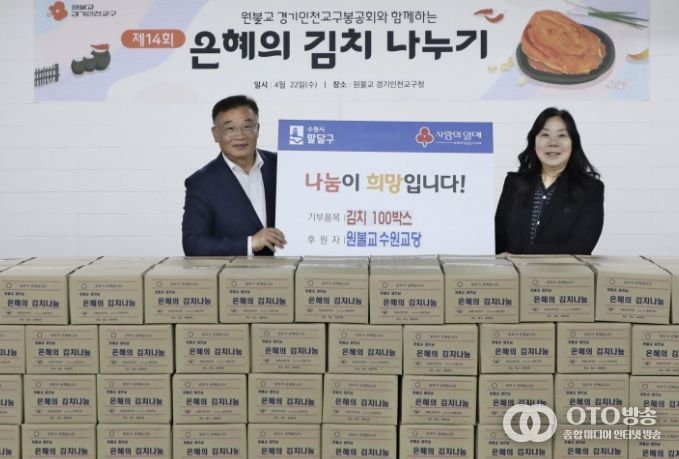oto방송 김민석 기자 | 수원시 팔달구은 원불교 수원교당으로부터 지난 22일, 김치 100박스를 기부받았다고 밝혔다.