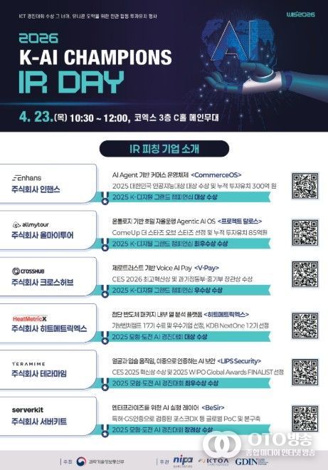 oto방송 김민석 기자 | 과학기술정보통신부는 정보통신산업진흥원, 한국통신사업자연합회와 함께 4월 23일 서울 코엑스에서 ‘2026 K-AI Champions IR Day’을 개최했다고 밝혔다.