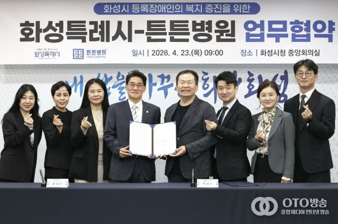 oto방송 김민석 기자 | 화성특례시는 23일 본관 2층 중앙회의실에서 튼튼병원과 화성시 등록장애인의 건강한 생활 지원과 삶의 질 향상을 위한 업무협약을 체결했다.