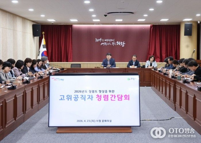 oto방송 김민석 기자 | 의왕시가 4월 23일 시청 중회의실에서 고위공직자를 대상으로 청렴간담회를 개최하고, 청렴도 향상을 위한 정책 추진 기반 마련에 나섰다.
