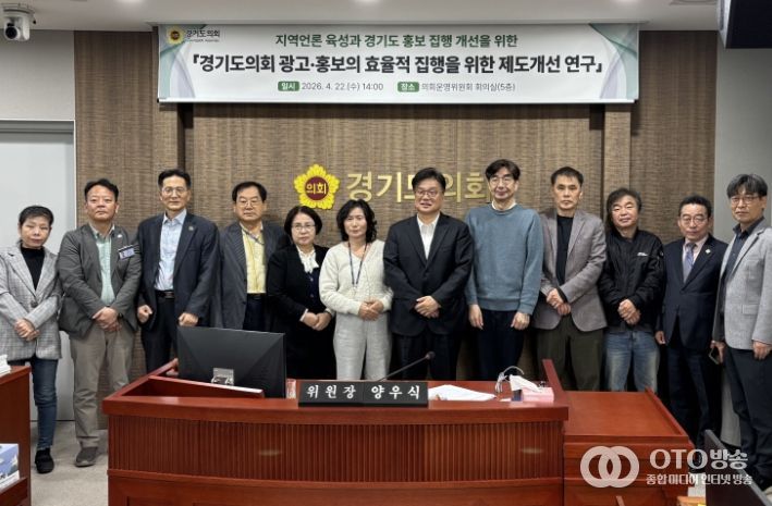 oto방송 김민석 기자 | 경기도의회 의회운영연구회(위원장 양우식)는 지난 22일 의회운영위원회 회의실에서 '경기도의회 광고·홍보의 효율적 집행을 위한 제도개선 연구' 용역 중간보고회를 개최했다.
