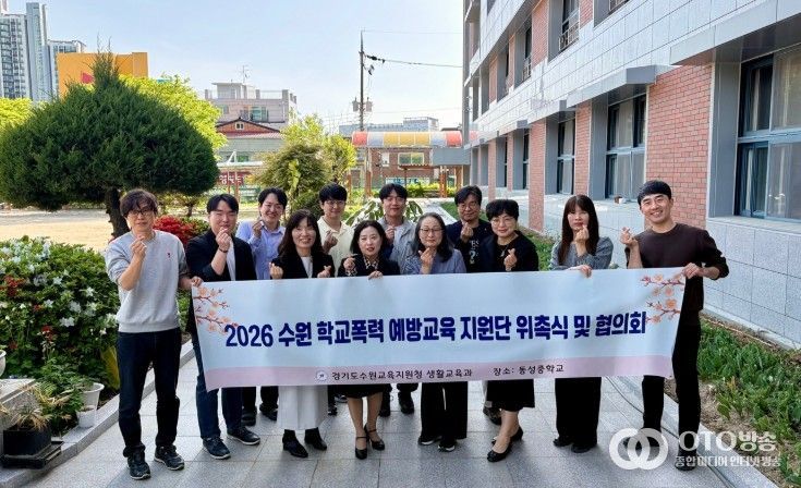 oto방송 김민석 기자 | 수원교육지원청은 4월 22일, 23일 양일간‘2026 학교폭력예방 지원단 및 학교폭력 사안처리 현장지원단 위촉식 및 협의회’를 개최했다. 총 23명의 지원단이 위촉장을 받고, 학교폭력 예방 및 학교폭력 사안 처리 대응 체계 구축을 위해 머리를 맞댔다.
