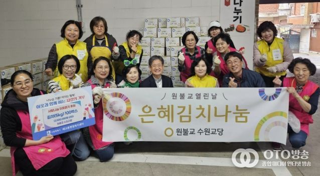 oto방송 김민석 기자 | 수원시 팔달구 매교동은 지난 22일, 원불교 수원교당(교구장 김도천)으로부터 직접 담근 배추김치(5kg) 100박스를 기부받았다고 밝혔다.