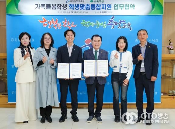 oto방송 김민석 기자 | 충남교육청은 24일, 도교육청 접견실에서 충남교육청 관계자와 초록우산 충남지역본부 관계자들이 참석한 가운데, ‘가족돌봄학생’의 건강한 성장을 지원하기 위한 업무협약을 체결했다고 밝혔다.