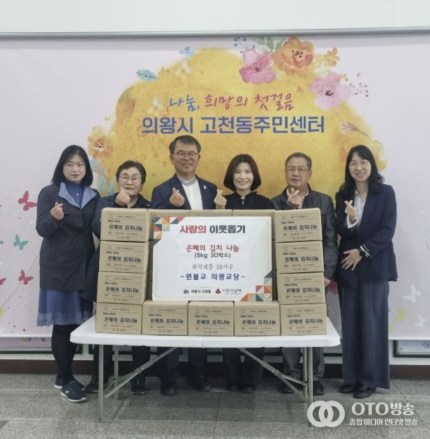 원불교 의왕교당은 매해 의왕시 고천동에 꾸준히 직접 담근 김치를 후원해 왔으며, 올해에도 취약계층에 전달해 달라며 교당의 정성이 담긴 김치를 후원했다.