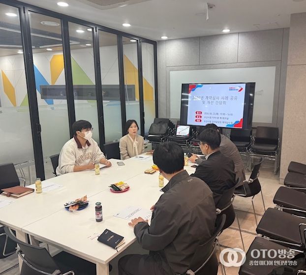 oto방송 김민석 기자 | 오산시는 지난 23일 오후 3시 시청 본관 지하 1층 다목적실에서 계약심사 업무의 전문성을 높이고 지자체 간 실무 협력체계를 강화하기 위해 안양시 계약심사 담당자들과 함께 계약심사업무 사례 공유 및 업무개선 간담회를 개최했다.