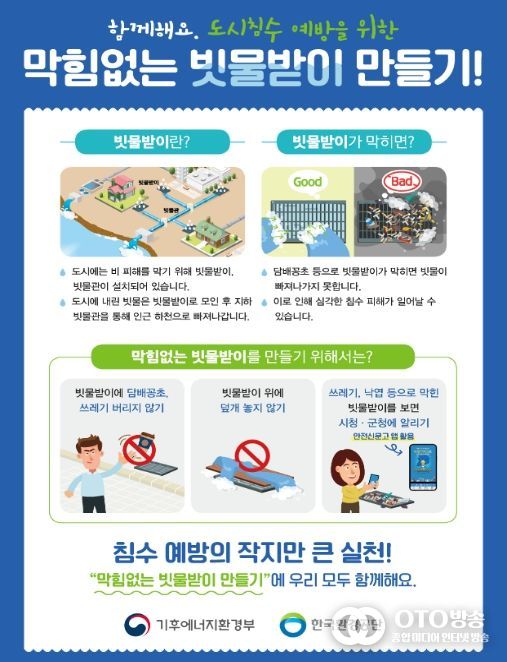 한편, 기후에너지환경부는 여름철 자연재난대책기간 중 도시침수 대응을 위해 각 지방정부의 빗물받이 등 하수도 시설 유지관리 상황을 지속적으로 살피고, 현장 점검을 통해 실제 예방 대책이 제대로 이행되고 있는지 철저히 관리할 방침이다.
