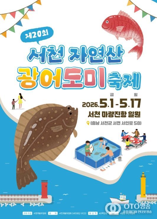 oto방송 김민석 기자 | 서천군은 오는 5월 1일부터 17일까지 마량진항 일원에서 ‘제20회 서천 자연산 광어·도미 축제’를 개최한다.