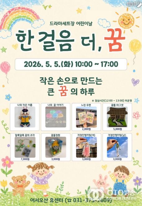 oto방송 김민석 기자 | 오산시는 오는 5월 5일 어린이날을 맞아 오산 드라마세트장 일원에서 어린이와 가족이 함께 즐길 수 있는 체험 프로그램 ‘한 걸음 더, 꿈’을 운영한다고 밝혔다.