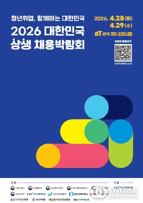 oto방송 김민석 기자 | 고용노동부를 비롯한 관계부처(과학기술정보통신부・문화체육관광부・산업통상부・보건복지부・중소벤처기업부) 및 한국경제인협회 등 경제단체는 공동으로 청년의 일자리 기회 확대를 위해 4월 28일과 29일, 서울 양재 aT센터에서 「2026 대한민국 상생 채용박람회」를 개최한다.