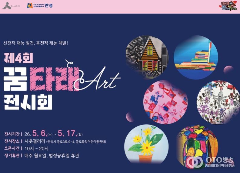 oto방송 김민석 기자 | 안성시 공도 작은미술관 시옷갤러리에서는 오는 5월 6일부터 5월 17일까지 '제4회 꿈타래 Art 전시회'가 개최된다. 내혜홀 꿈타래 연구소가 주최하는 이번 전시는 발달장애 예술인과 그 가족들의 예술 활동을 지역사회에 소개하고, 예술을 통한 소통의 장을 넓히기 위해 마련됐다.