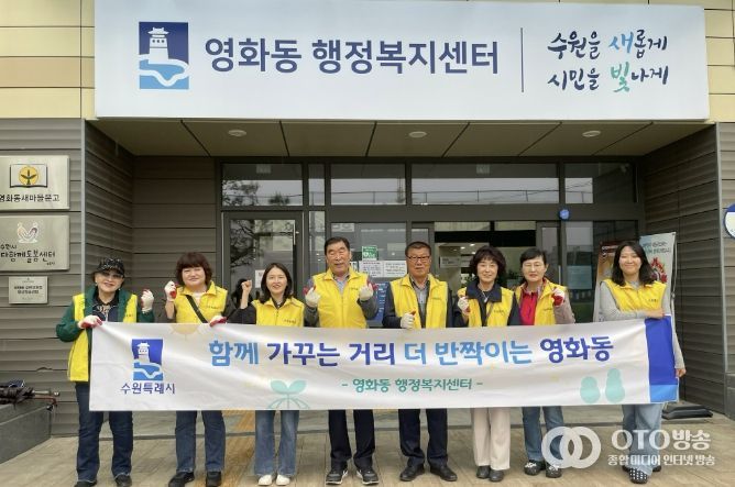 oto방송 김민석 기자 | 수원시 장안구 영화동은 지난 28일, 주민자치회와 함께 거북시장 사거리 일대에서 봄철 환경정비 활동을 실시하며 쾌적한 마을환경 조성에 나섰다.