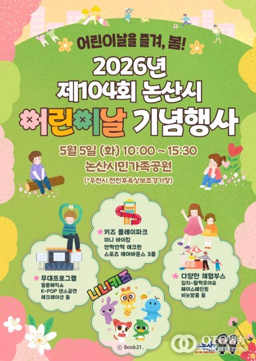 논산시는‘제104회 어린이날’을 맞아 논산시민가족공원 일원에서 ‘2026 어린이날 큰잔치’를 연다.