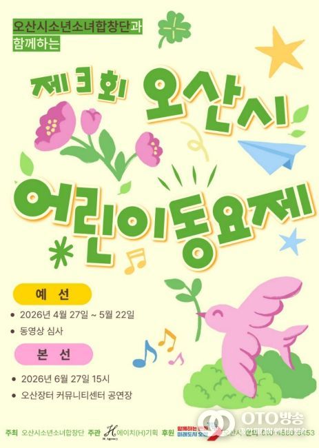 oto방송 김민석 기자 | 오산시는 오산시소년소녀합창단이 오는 6월 27일 오산장터 커뮤니티센터 공연장에서 ‘제3회 오산시 어린이 동요제’를 개최한다고 밝혔다. 이번 행사는 사라져가는 동요를 널리 알리고, 어린이들에게 아름다운 우리말과 올바른 정서를 기를 수 있는 기회를 제공하기 위해 마련됐다.