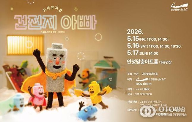가족뮤지컬 '건전지 아빠'는 5월 15일부터 17일까지 3일간 무대에 오른다. 매일 조금씩 지쳐가는 일상에서 잠시 멈춰 서고 싶은 모든 가족에게, 이 공연은 서로의 손을 맞잡고 다시 나아갈 힘을 채워주는 가장 따뜻한 ‘가족 충전소’가 될 것이다.