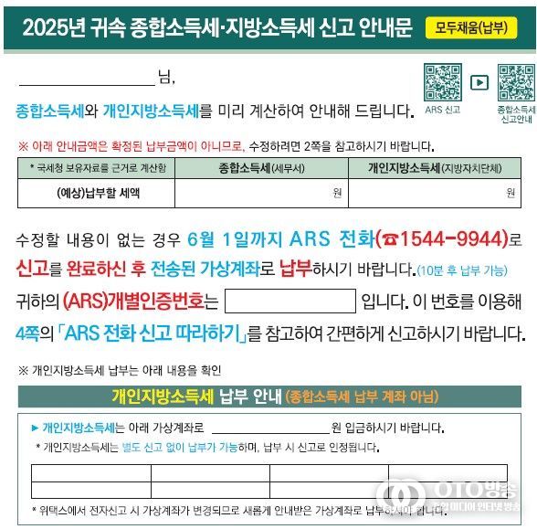 국세청은 납세자 중심의 신고 환경을 조성하기 위해 홈택스, 손택스, ARS 등 신고 시스템 전반을 고도화하고, 신고 안내문을 대폭 개선했다.