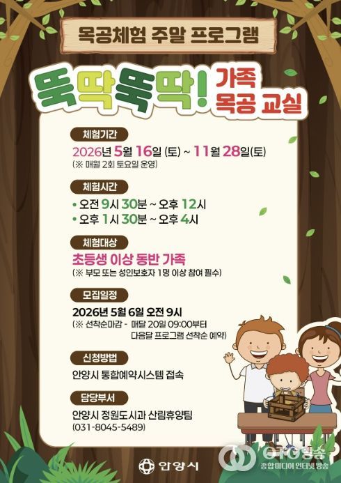 oto방송 김민석 기자 | 안양시는 초등학생과 가족이 함께 참여할 수 있는 목공체험 주말 프로그램인 ‘뚝딱뚝딱! 가족 목공 교실’을 운영한다고 30일 밝혔다.
