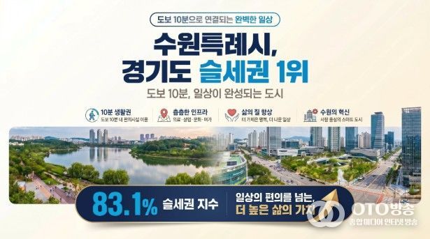 oto방송 김민석 기자 | 수원특례시가 경기도에서 가장 살기 편한 ‘슬세권 명당’이라는 분석 결과가 나왔다.