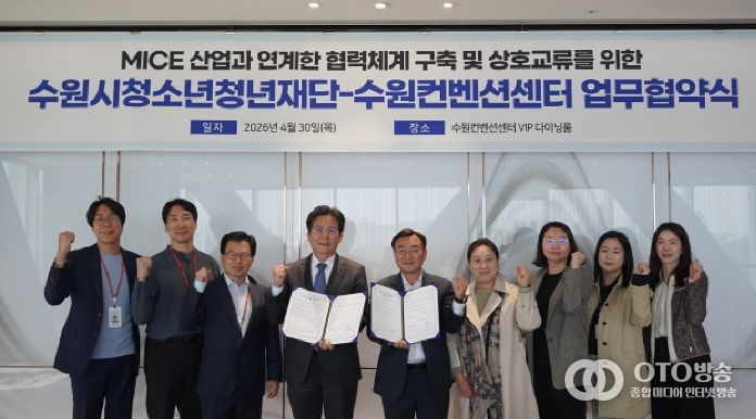 oto방송 김민석 기자 | 수원시청소년청년재단(이사장 최종진)과 수원컨벤션센터가 4월 30일 양 기관의 상호 협력과 교류 확대를 위한 업무협약을 체결했다.