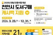 oto방송 김민석 기자 | 천안시는 23일부터 지역 인증서점에서 도서 구매시 10% 추가 캐시백을 지원한다고 밝혔다. 지역 인증서점은 충남도가 인증한 지역서점으로, 현재 천안시 내 지역 인증서점은 21개소다. 천안사랑카드로 지역 인증서점에서 도서를 구입할 경우 기본 캐시백과 함께 결제액의 10%를 추가로 받을 수 있다. 지원 금액은 월 최대 1만 원이며, 지류 상품 결제는 불가능하다. 예산 소진 시 사업은 조기 종료될 수 있다. 인증서점 목록 및 자세한 내용은 천안사랑카드 앱을 참고하거나 도서관정책팀으로 문의하면 된다. 문현주 천안시도서관 본부장은 “도서구매 캐시백 지원사업을 통해 지역서점에 큰 도움이 되고, 일상 속 독서문화 확산으로 이어지길 기대한다”며 “앞으로도 동네서점과의 상생 협력을 위해 노력할 것”이라고 말했다.