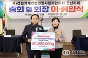 oto방송 김민석 기자 | 오산시는 사단법인 건설기계개별연명사업자협의회 오산지회가 저소득 취약계층 지원을 위한 이웃돕기 성금 100만 원을 기탁했다고 밝혔다. 이번 성금은 지난 9일 오산컨벤션웨딩뷔페에서 열린 건사협 오산지회 정기총회에서 마련된 것으로, 총회 행사의 일환으로 지역사회 나눔 실천을 위해 전달됐다. 기탁된 성금은 사회복지공동모금회를 통해 오산시 관내 취약계층의 겨울나기를 돕는 데 사용될 예정이다. 이날 정기총회에서는 지난 10년간 오산지회를 이끌어온 안영용 회장에 이어 오선희 회장이 신임 회장으로 취임했다. 오선희 회장은 “앞으로도 지역사회의 일원으로서 회원들과 함께 나눔과 봉사 활동을 지속하며 따뜻한 지역사회를 만드는 데 힘쓰겠다”고 밝혔다. 행사에 참석한 이권재 오산시장은 “건사협 회원 여러분들의 노고 덕분에 오산의 경제와 산업이 더욱 활기차게 발전하고 있으며, 더욱 안전한 산업 현장이 되어 가고 있다”며 감사의 말을 전했다. 한편, 건사협은 건설기계 사업자의 권익 보호는 물론, 국토교통부가 지정한 조종사 안전교육 등 전문 안전교육을 시행하는 단체로, 건사협 오산지회는 성금 기탁과