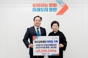 oto방송 김민석 기자 | 오산시는 지난 10일 경기도여성단체협의회 오산시지회가 지역 인재 육성을 위해 장학금 500만 원을 기탁했다고 밝혔다. 경기도여성단체협의회 오산시지회는 여성의 권익 증진과 지위 향상을 위해 활동하는 단체로 ▲가정폭력 예방교육 ▲양성평등주간 기념행사 ▲불법촬영 금지 및 저출산 극복 캠페인 등을 추진하며 저소득층을 위한 봉사활동과 다양한 사회공헌 활동을 이어오고 있다. 또한 저소득 취약계층 지원금과 특기 장학금 기탁 등 꾸준한 나눔 활동을 펼친 공로를 인정받아 지난해 3월 오산시 명예의 전당에 등재됐으며, 이번에 장학금 500만 원을 추가로 기탁하며 지역사회 공헌 활동을 이어가고 있다. 강진화 회장은 “지역의 우수한 인재들이 자신의 재능을 마음껏 발휘하며 성장하길 바라는 마음으로 회원들과 뜻을 모았다”며 “앞으로도 지역사회와 함께 인재를 키우는 나눔 활동을 지속적으로 이어가겠다”고 말했다. 이권재 오산시장은 “지역 인재 육성을 위해 따뜻한 나눔을 실천해 주신 경기도여성단체협의회 오산시지회에 깊이 감사드린다”며 “회원들의 정성이 담긴 장학금이 오산의 학생들이 자신의 재능을 펼치고